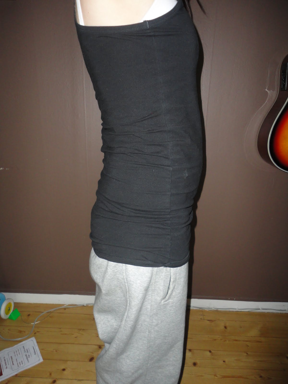 | Utan tröja Och här en med Liam i magen från vecka 20; |